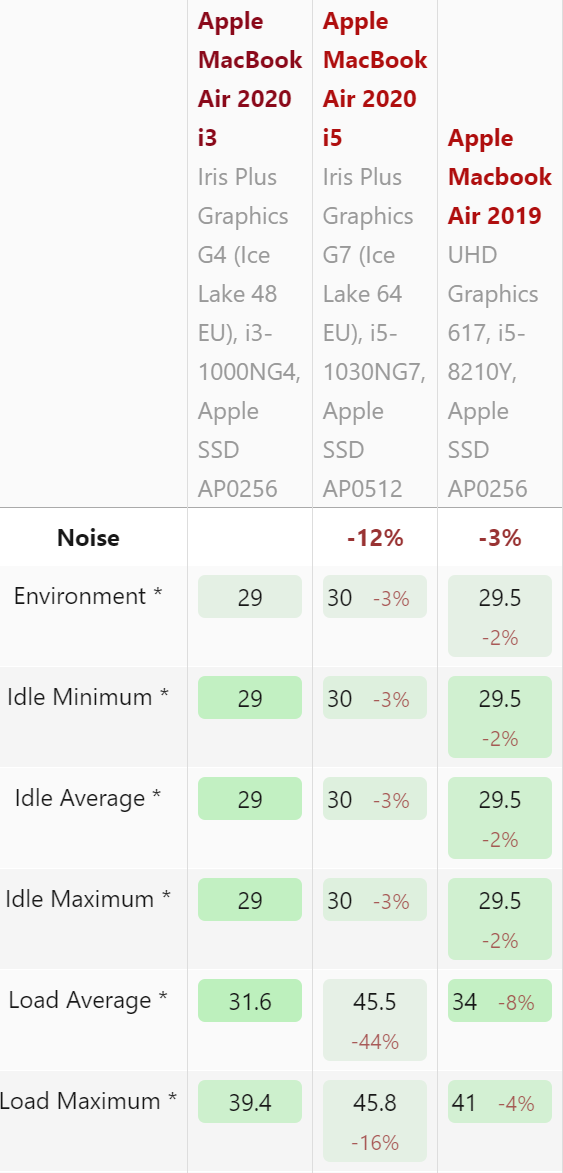 “Pointing this one out again - if you care about noise at all, the i3 is probably the way to go. You'll notice there the average decibel level for load is 31.6 for the i3 and 45.5 for the i5.
