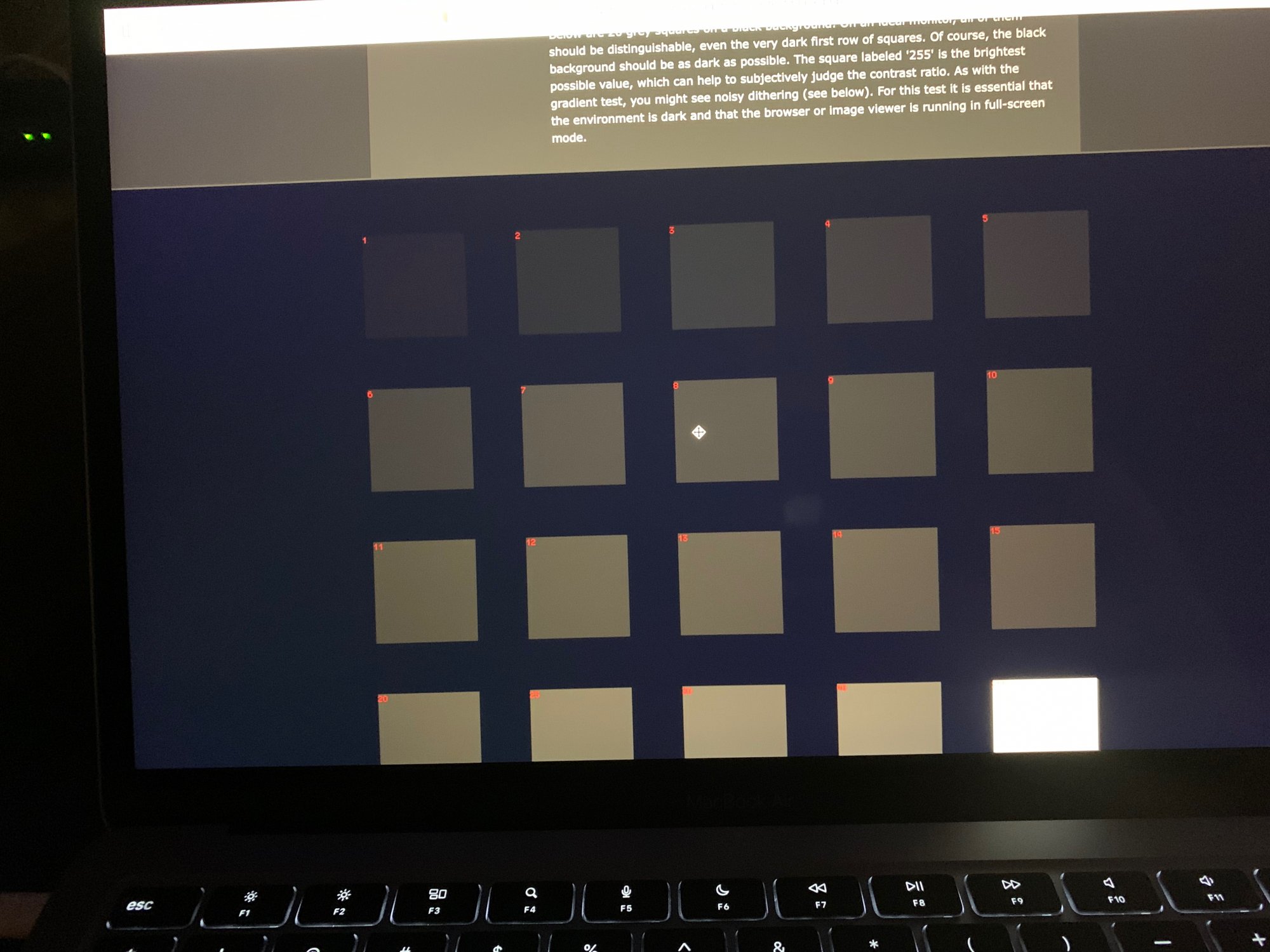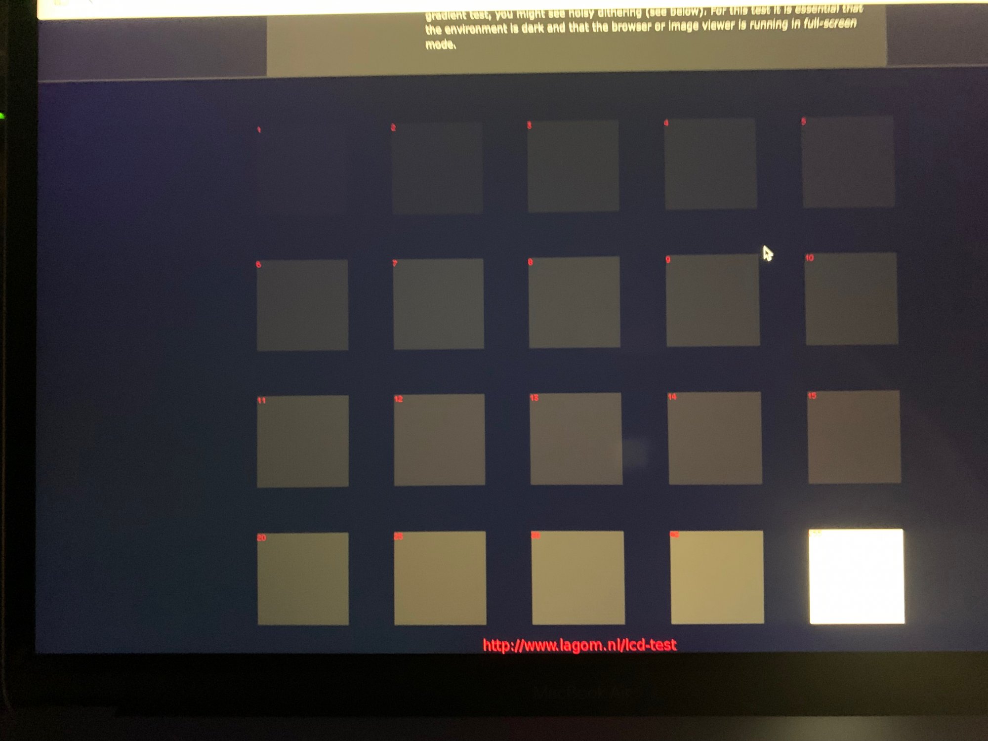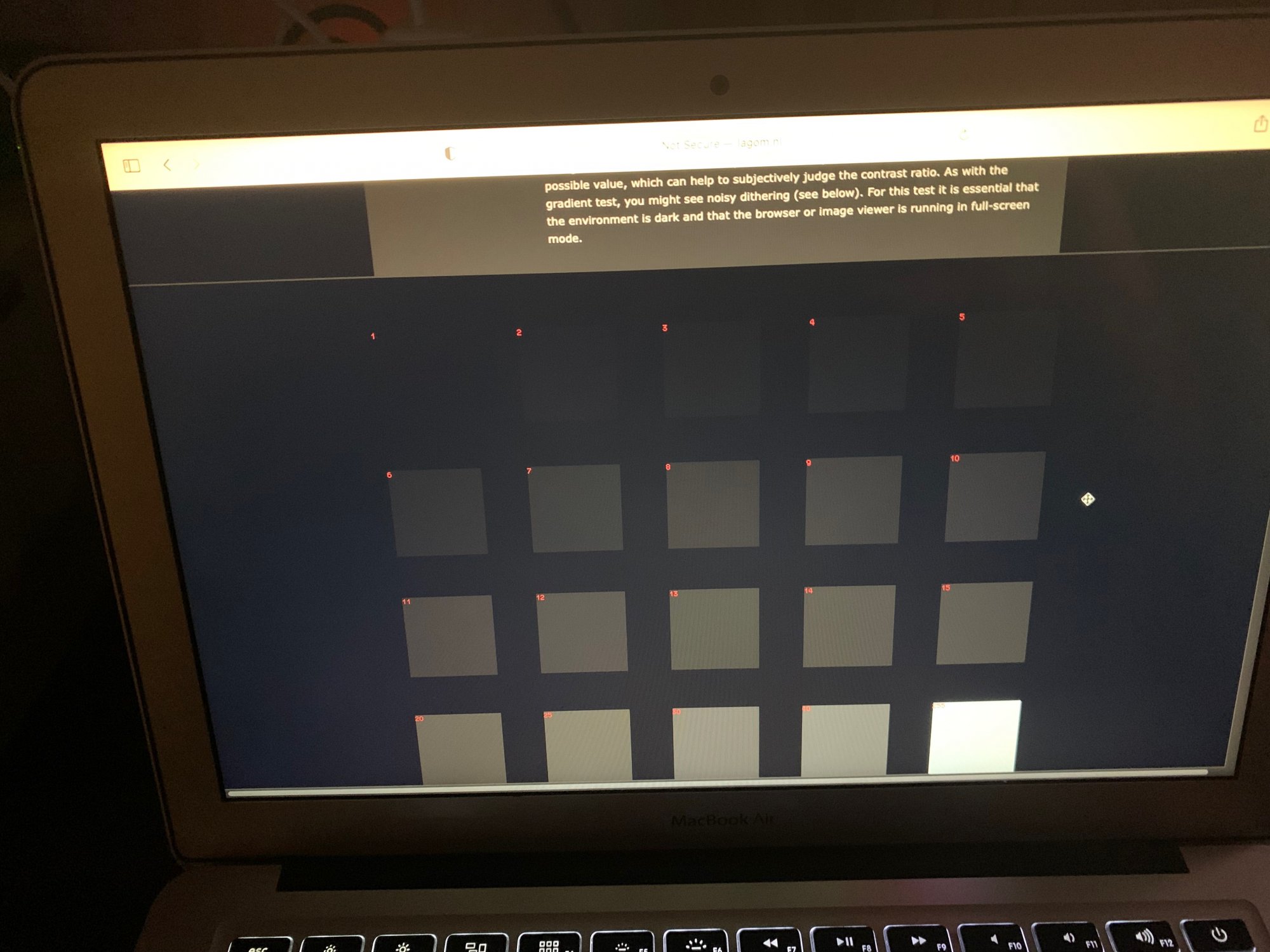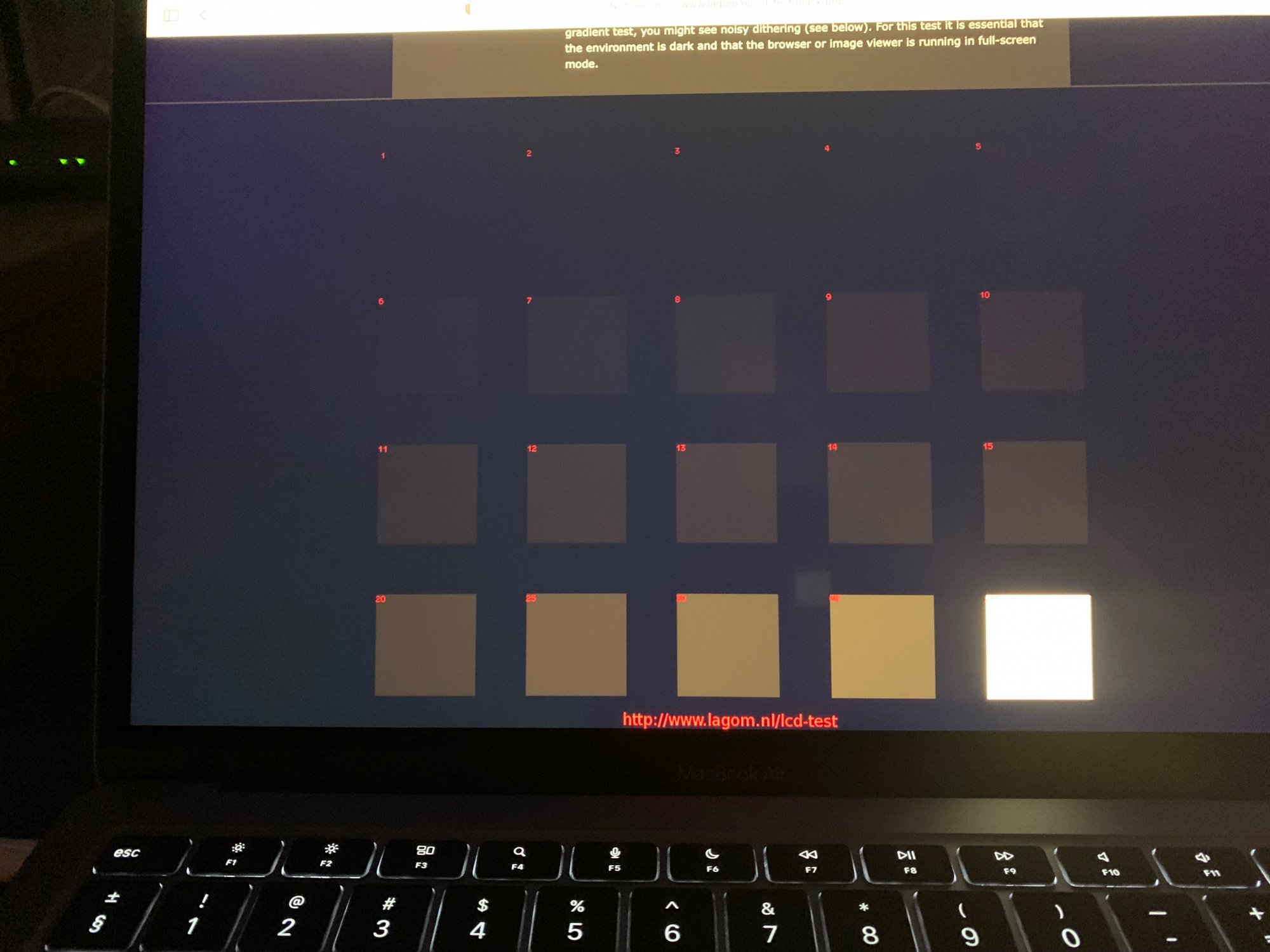 I do own a new MBA M1 and went to http://www.lagom.nl/lcd-test/black.php to see how it performs. In this black level test I can not see beyond number 6, hardly 5. I also own an old MBA 2014 and it performs far better - up to number 2 at same brightness and conditions as MBA M1.