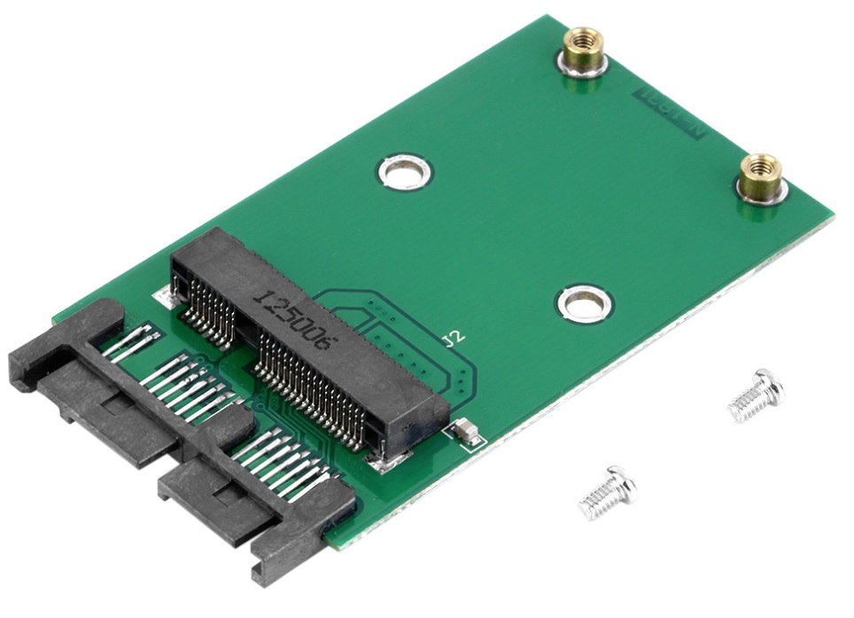 Micro-SATA and SATA share the same pin spacing and layout for their seven data pins, so the trick is getting the SATA pads from the LIF24 board to a condition in which they can be soldered to the micro-SATA data pads on the micro-SATA to mSATA board.