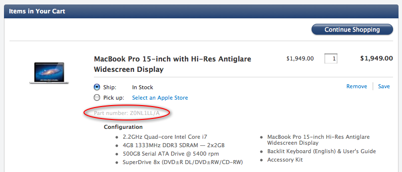 Hi, I understand that there is a 15" Macbook Pro (2011) model that can be up-scaled into a hi-resolution glossy screen where the resolution will be larger than the normal glossy screen one...does anyone know the model number for that one?, I cannot seem to find a way to identify it.