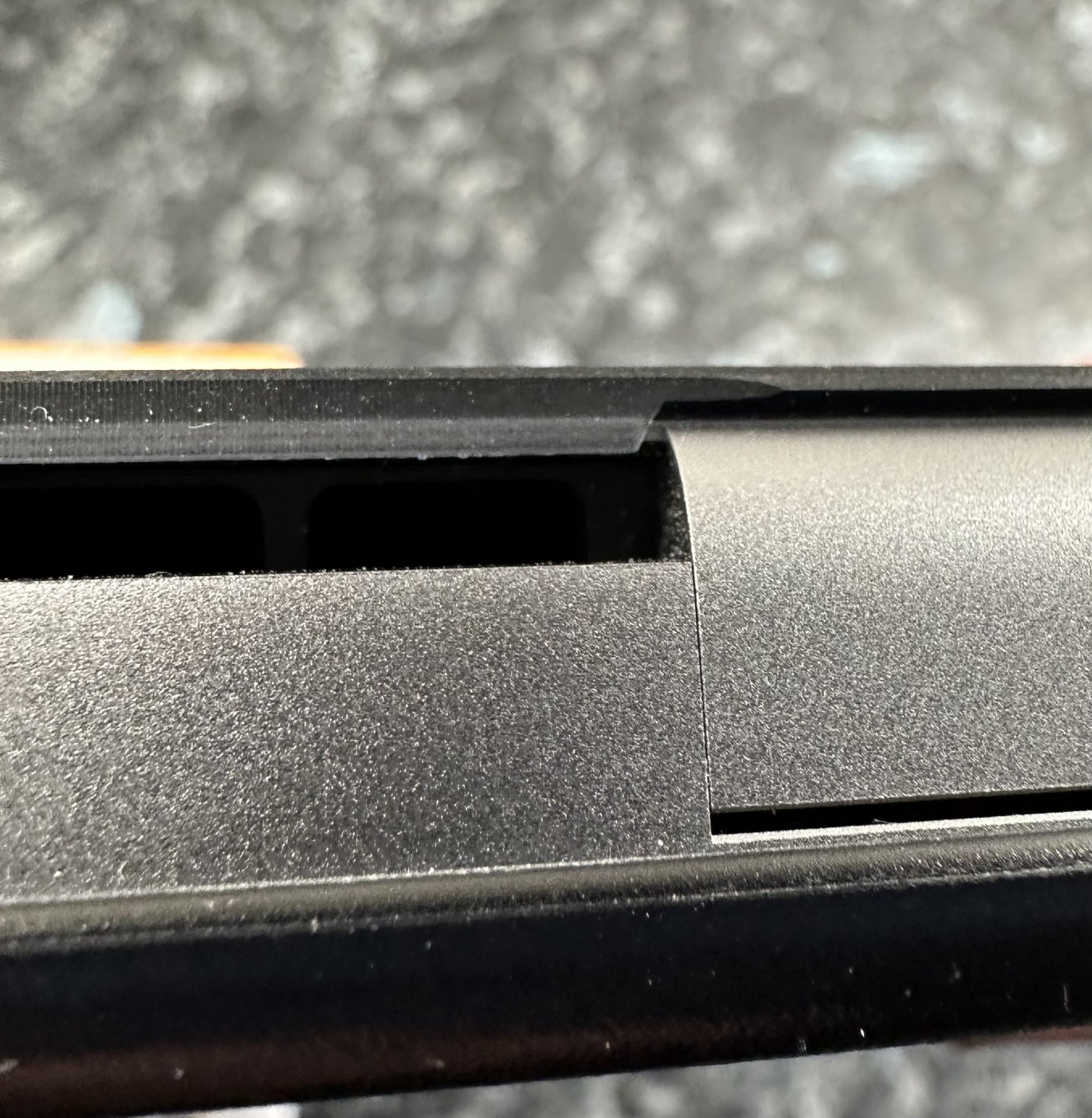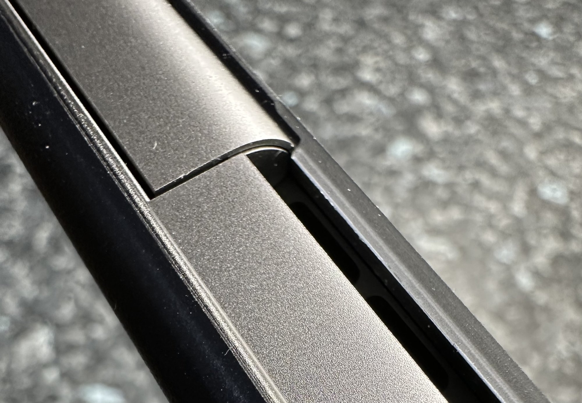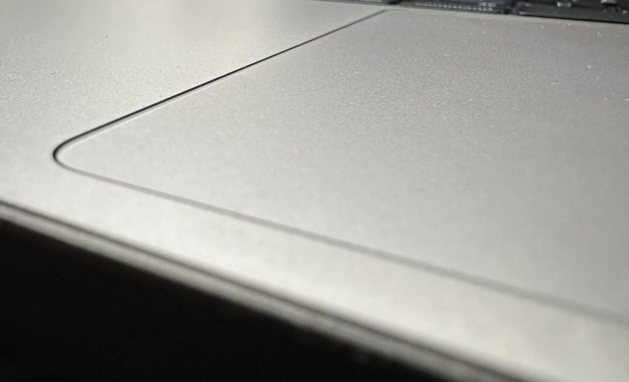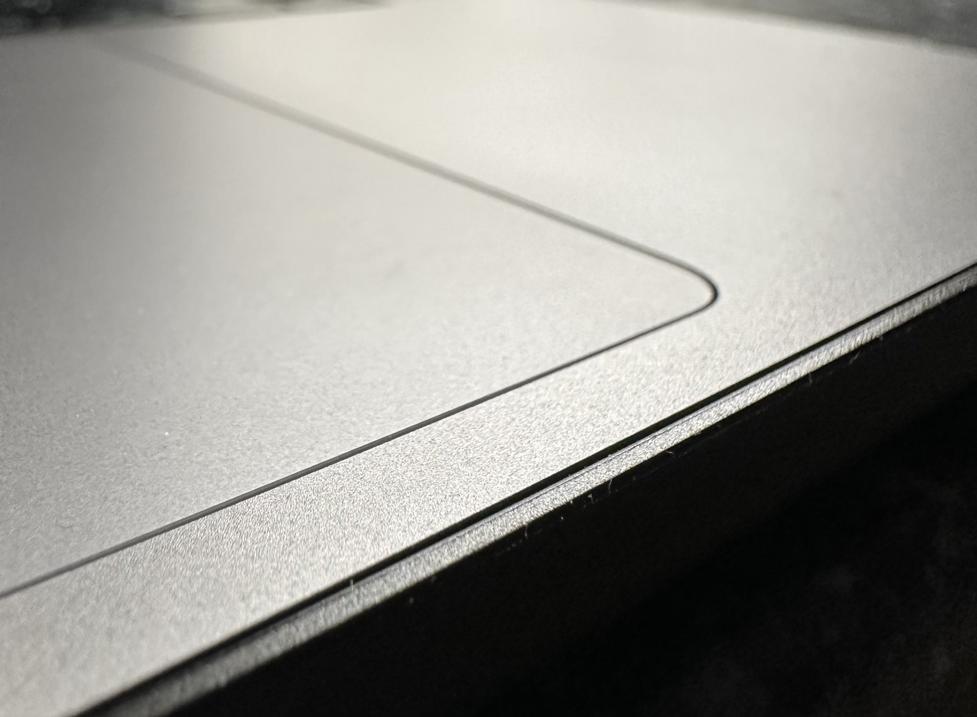 And the trackpad is level with the main case on the right but slightly recessed on the left, I believe usually it’s supposed to be slightly recessed all over.