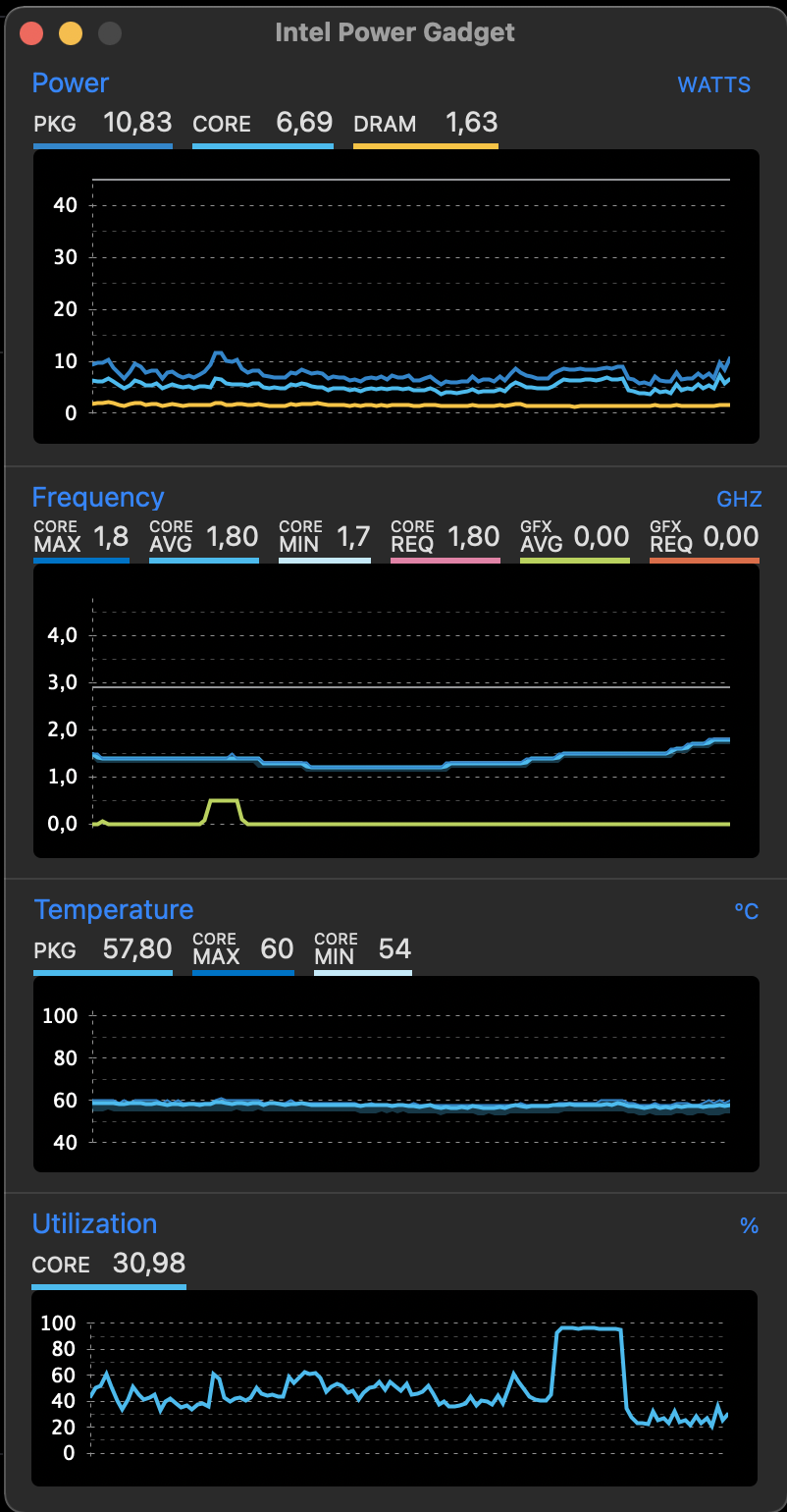 The CPU was running between 1,1 and 1,8. Strangely temp was at 58c but I don't know if it's correct because FANs are almost at full speed the whole day. Sitting the computer idle the speed return to normal values (2,9 to 4,5).