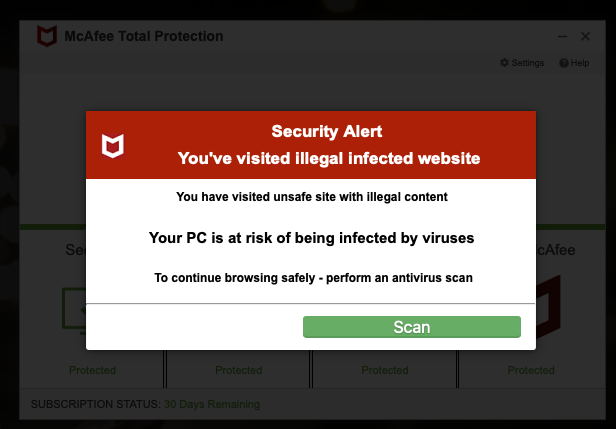 Did you ever see any notifications from McAfee when you had it installed? If so, do you recall the exact wording, or even some specific terms? For example, did it say that McAfee had detected a problem?
