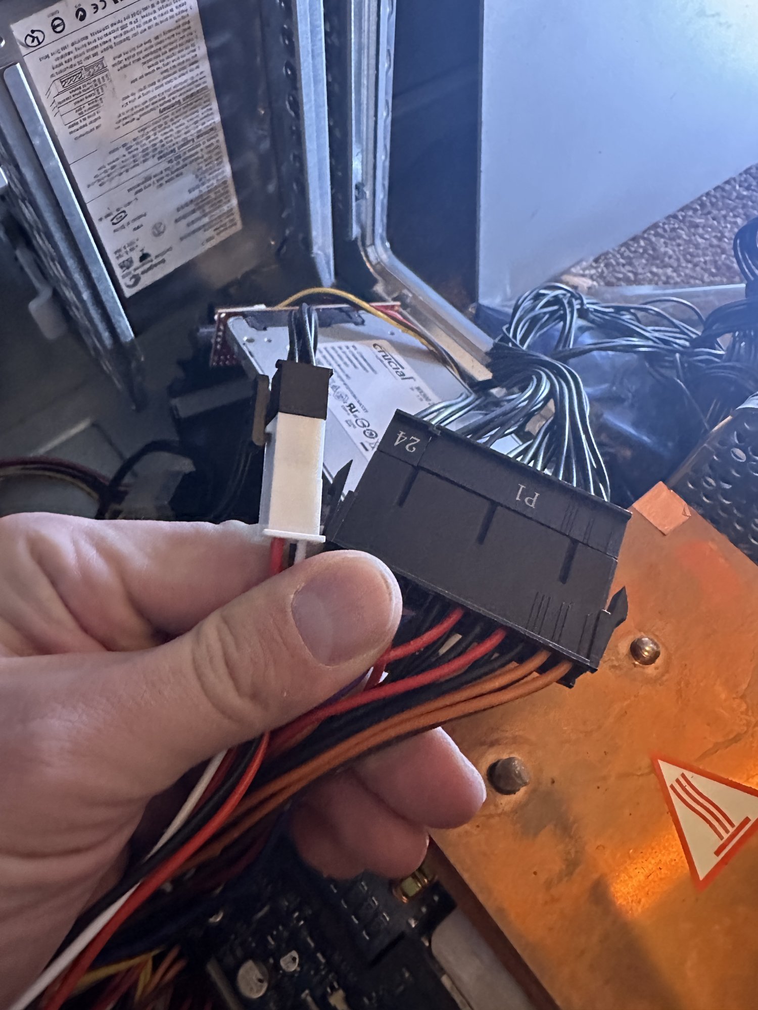 I made the classic mistake of organizing the cables before testing. The computer would chime but wasn't outputting a picture. I plugged in the original PSU and sure enough, it booted fine. I tried again with no dice. I decided to get a bit smarter, and booted off the old PSU and turn on file sharing so it'll pop on up on my network, then go back to the old PSU.