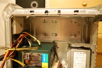 Where I'm going to install it. I still need to remove the small brackets that keep the would-be optical bay in place.