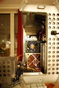 So, we all know the G4 MDDs are very nice machines, but they do have a slight noise problem. So much in fact, that I find the machine quite hopeless to use (I hate noisy computers...), unless of course you have a well-ventilated, sound-proof room to keep the machine in, well away from your desk...