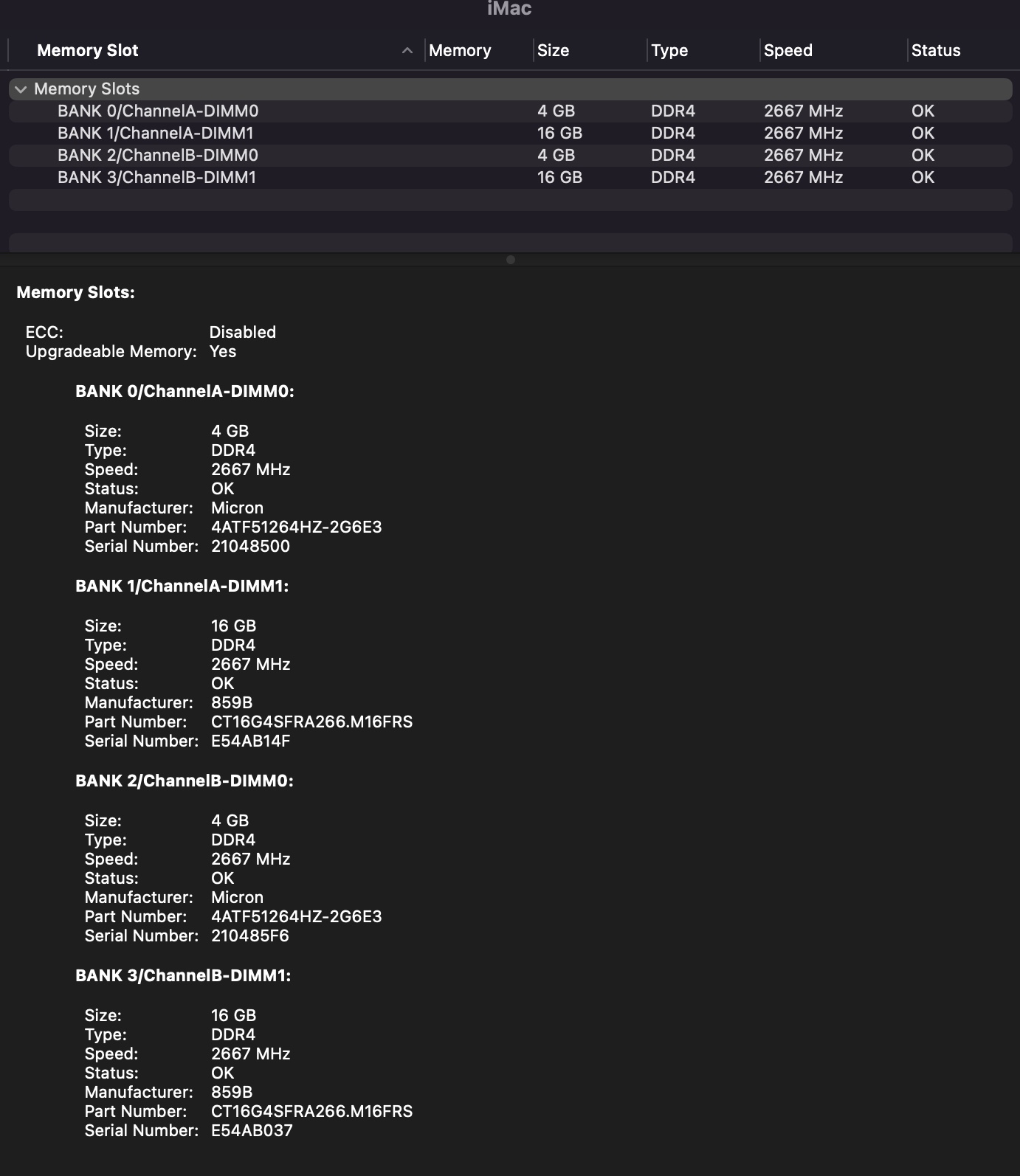 I wasn’t happy to see that one sodimm was made in China while the other was assembled in Mexico. They booted up ok after I checked the seating of the ram cage thing , in the same slots as the OEM SK Hynix 2x 4GB.
