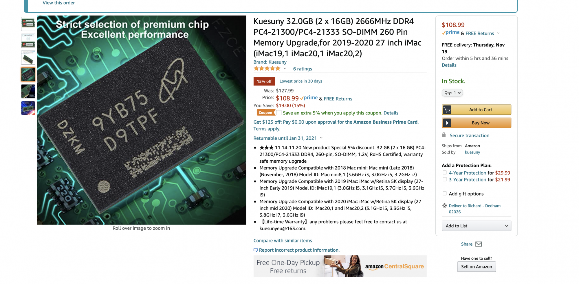 Others swear by OWC, but there have been reports of kernel panics on 2020 iMac using OWC RAM, but this may be just unfair coincidence.