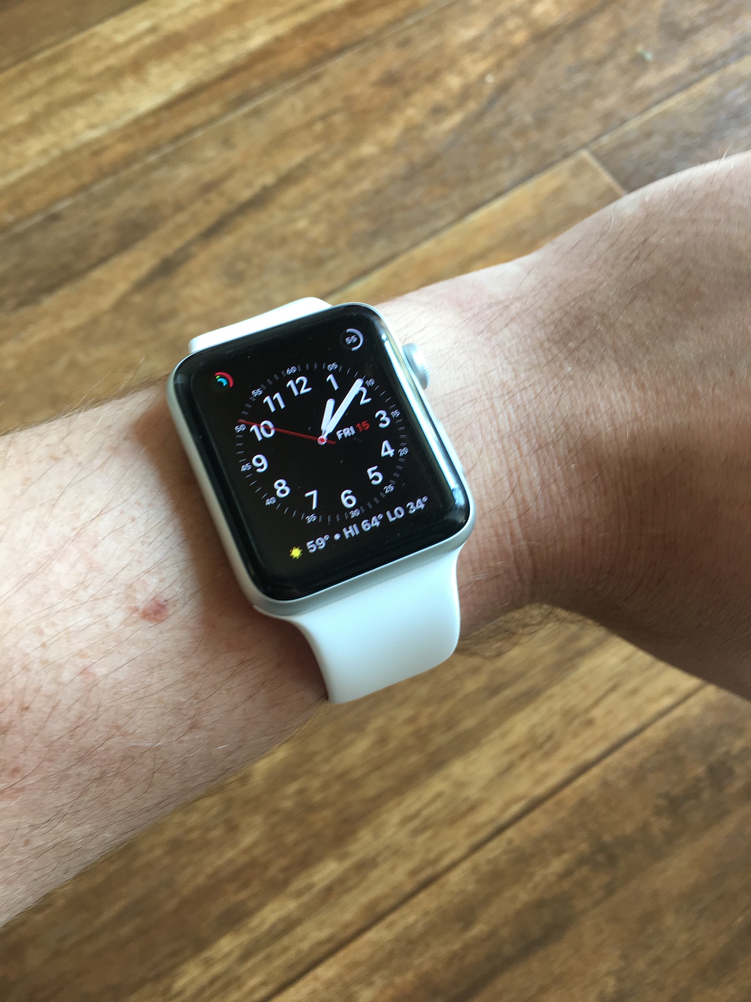 Would appreciate some pics of dudes wearing the white sport band! The harrier the arms, the better..... ;-)