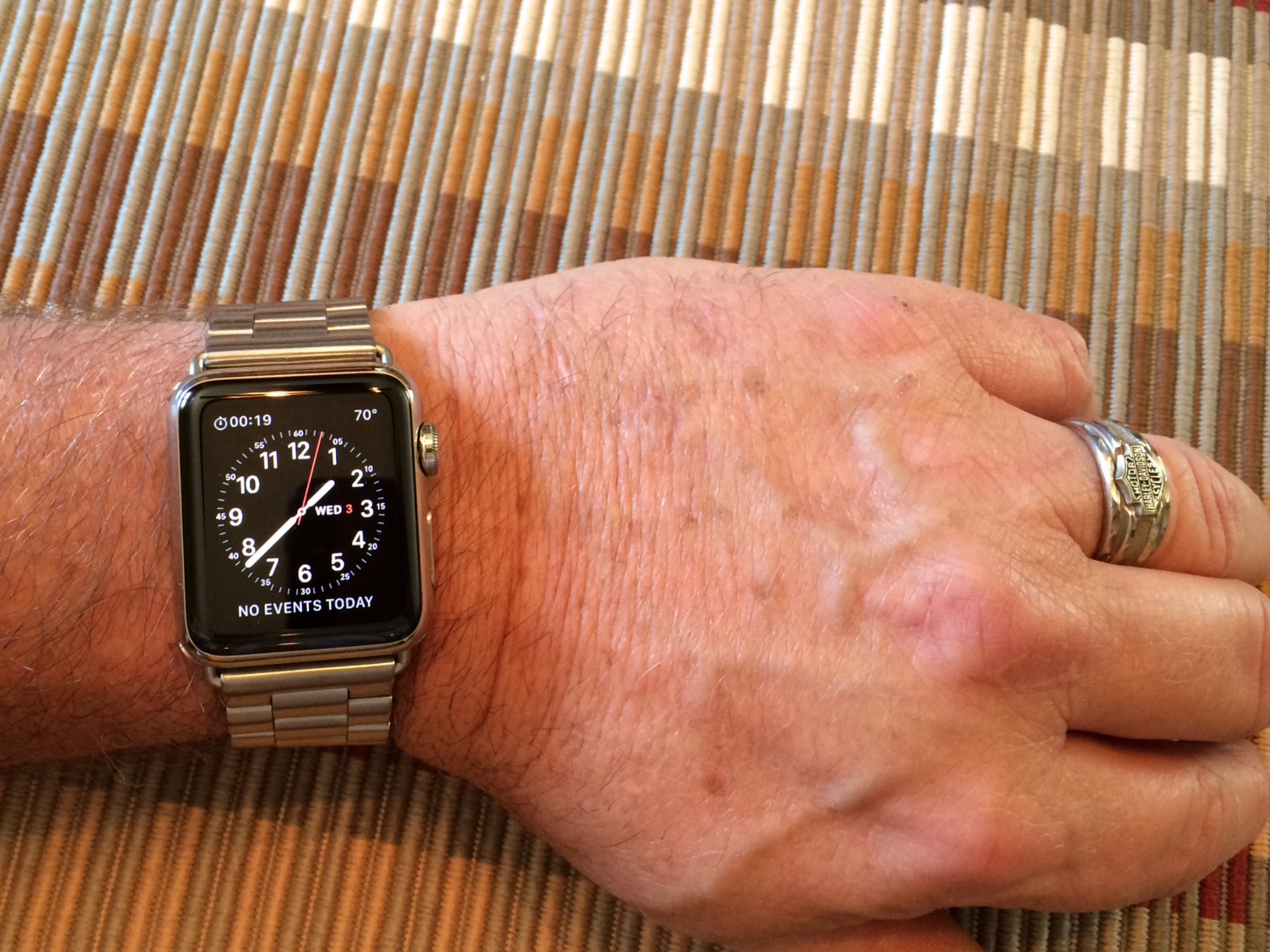 I have to say I'm not a big guy by any means, my wrists are about 55-60mm in width, and I have rather thin fingers too. I could see someone not feeling comfortable with the 38mm one, but I think a huge amount of people are getting the 42mm version just for the sake of getting the biggest one possible.