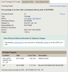 With that said, if UPS "normally" comes by in the afternoon, that's the "regular" UPS delivery truck (2nd day, 3-day, longer). Express/overnight packages usually have a dedicated truck that sometimes shows up ass early (I've had them arrive at 6:50 am) so they can make their 10:30 deadline for all packages. Soooo I guess we get to wait. At least I get to drop a 500GB drive into my MacBook tomorrow to tide me over...