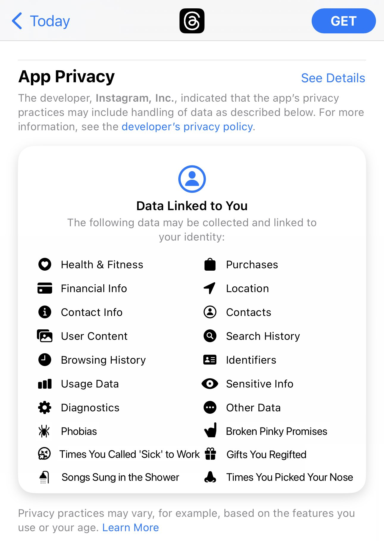 There have been concerns about the data that the app is collecting, and the App Store entry suggests information like usage data, location, contacts, identifiers, purchases, health & fitness, browsing history, and more will be collected and linked to users, but it has the same disclosures as Instagram. Twitter collects and utilizes similar data as well.
