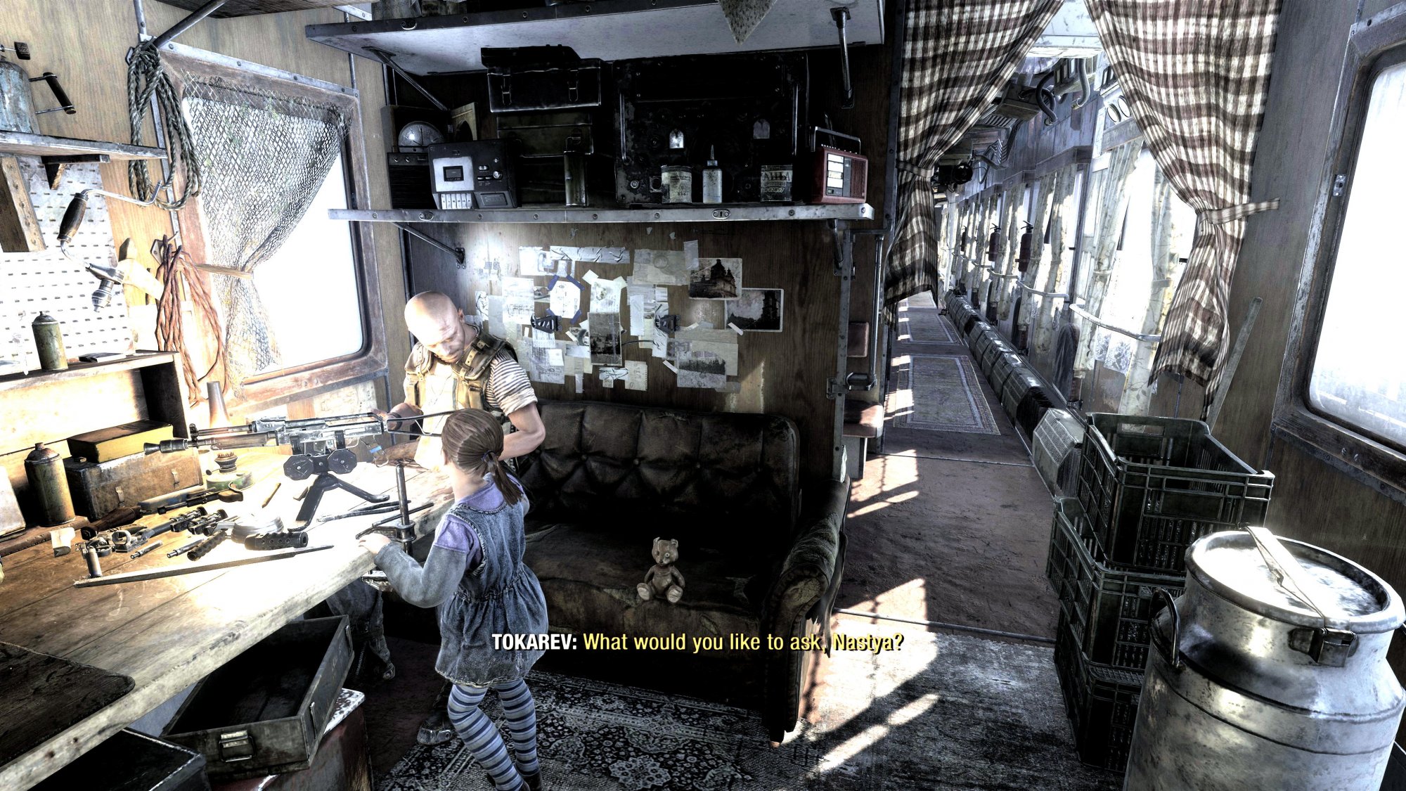 - Guns- Once you see a weapon (Pick it up?) you’ll be able to access it from the workbench on the train even if you left yours somewhere out in the field.