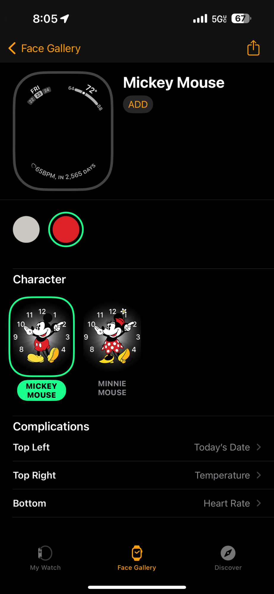 When I preview the Mickey Mouse Face with the Heart Rate Complication at the bottom, it weirdly shows a heart rate in the future.