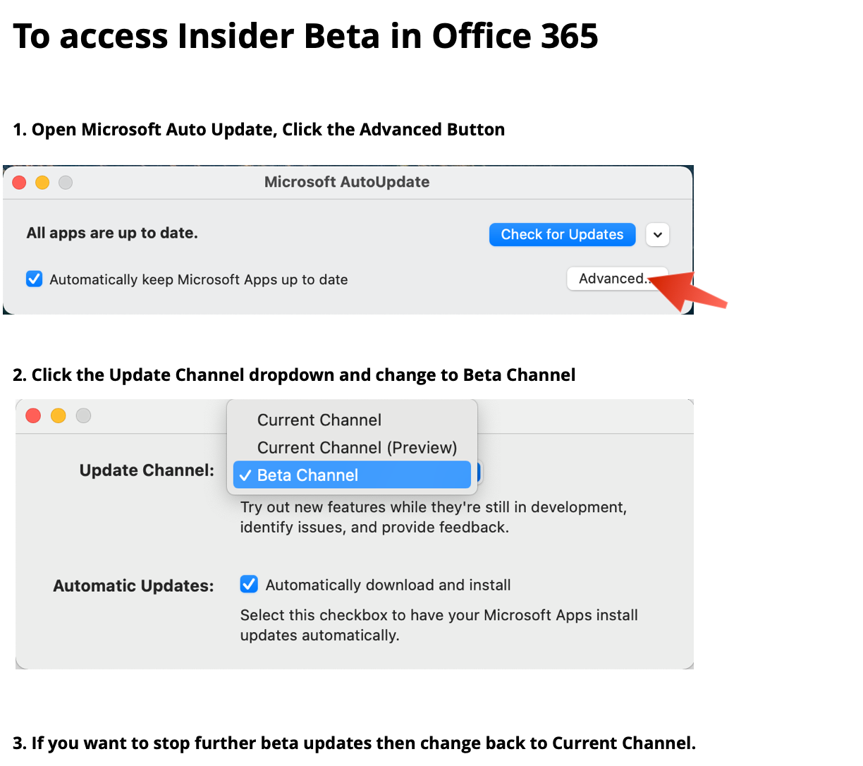 Using Microsoft 365 license.Note you can't run the Beta if you purchased Office via the Apple App Store.