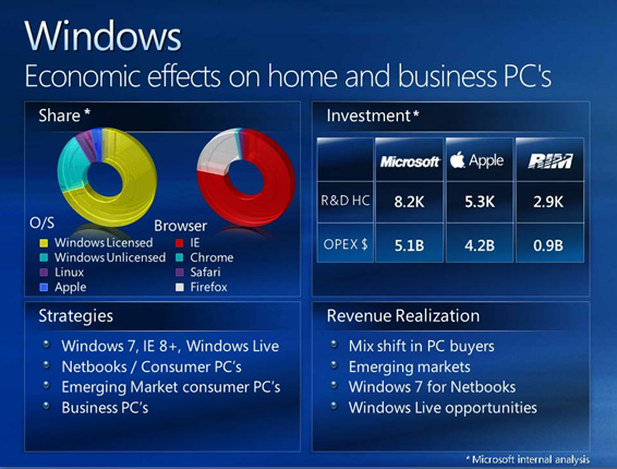 5 years ago any employee of Microsoft would have laughed at the thought of Apple being a threat, or even a competitor. Apple was nothing more than a tiny 2% market share player that wouldn't even license its OS to any other manufacturer. No threat at all.