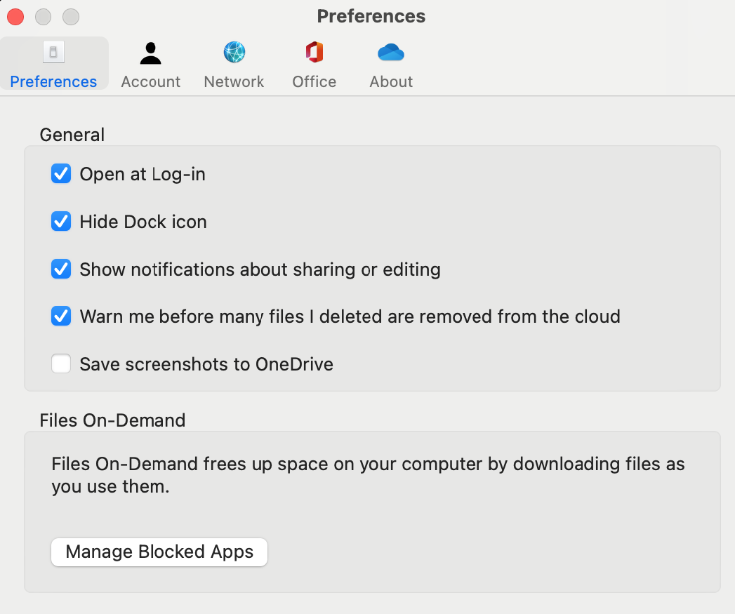 OneDrive for Mac, before update: