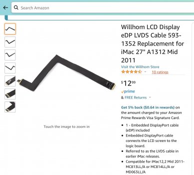 I’ve ordered another display port cable to my surprise easily available and even from Amazon. I thought I was completely out of luck. 2011 iMac, remember it’s the last one you can easily take apart an upgrade and do things to. I’ll attach some pictures if it will allow me here and if anybody has some experience or advice please chime in and have a hand. It feels like I lost a good friend. I’m so disappointed when I got that blank screen, although I was expecting it because of that last connection from the panel with the latch. The one on the far right, the last one to install per the OWC Videos.