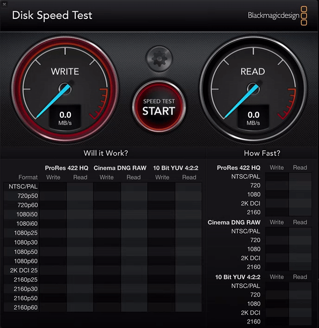 I find the Blackmagic app does not always give the most consistent results. Try the AJA System Test and see what sort of results you get: https://itunes.apple.com/us/app/aja-system-test-lite/id1092006274?mt=12#