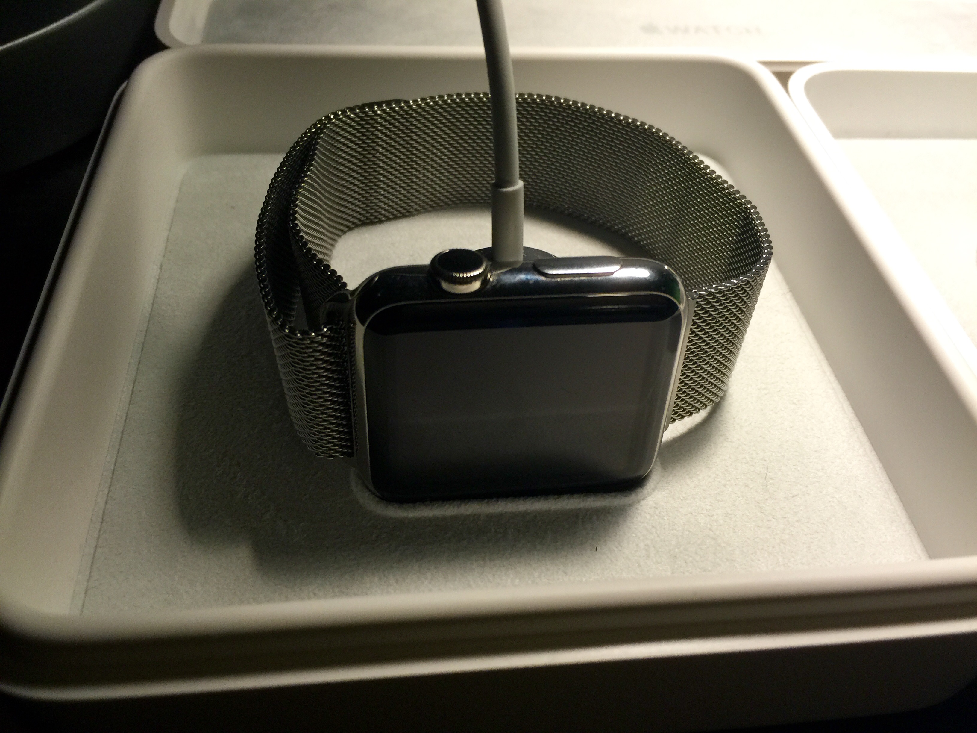 I'm trying to understand the geometry of charging an Apple Watch with a Milanese loop. Do you stick the puck between the strap and the base so that they form a sandwich? Do you take the strap off? How do you do it?!