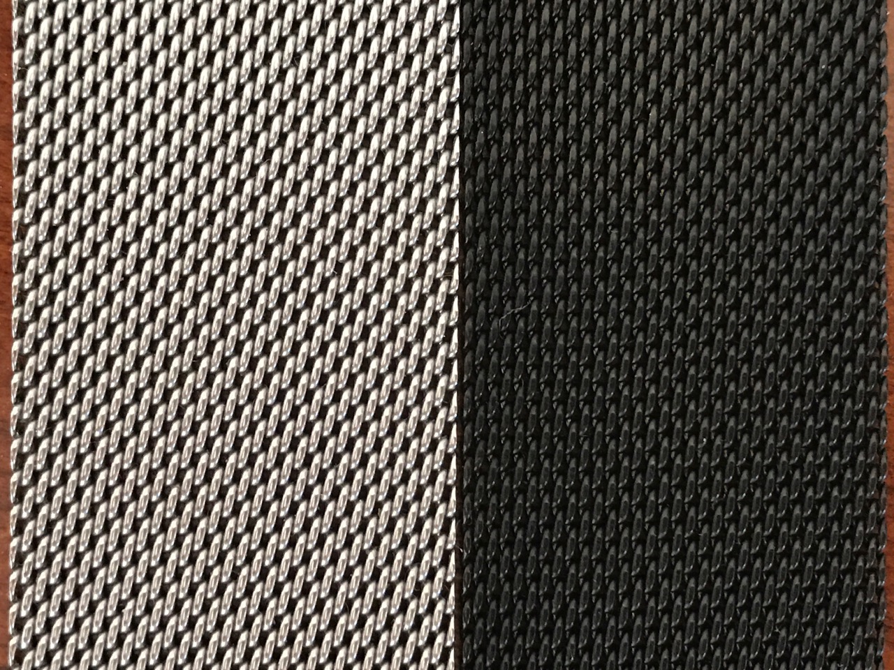 Here's another close-up image showing the weave pattern, again comparing the genuine silver Milanese loop with the Penom black: