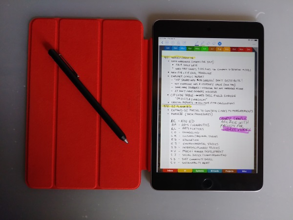 Here's my Mini 4 with a (PRODUCT) Red smartcover ($8 new, free shipping, ebay), iCarez matte screen protector, the Adonit Dash 3 powered capacitive stylus, and GoodNotes 4 using my Journal/Project Notebook.