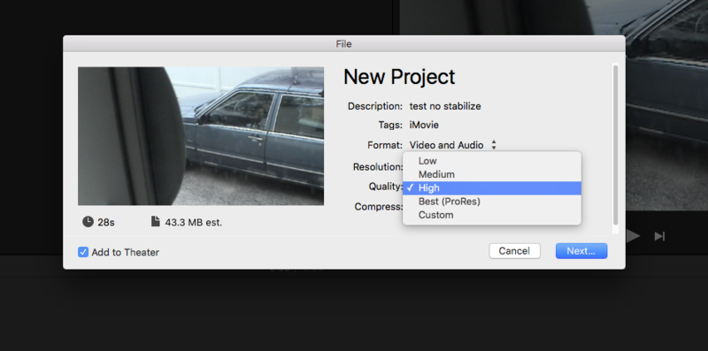 Im currently running iMovie 10.1.2 El Capitan 10.11.6. I notice with this version of iMovie it only gives you 520p 720p 1080p. I currently have old home movies that I import a while back on the older version I'm not sure which one of iMovie and they are mini DV tape. My question is what is the best way to get the best quality when I export it to a usb drive as a file for the final movie. Ive noticed the quality is not as good id rather it just be the native 480p SD but the new iMovie doesn't seem to offer that.