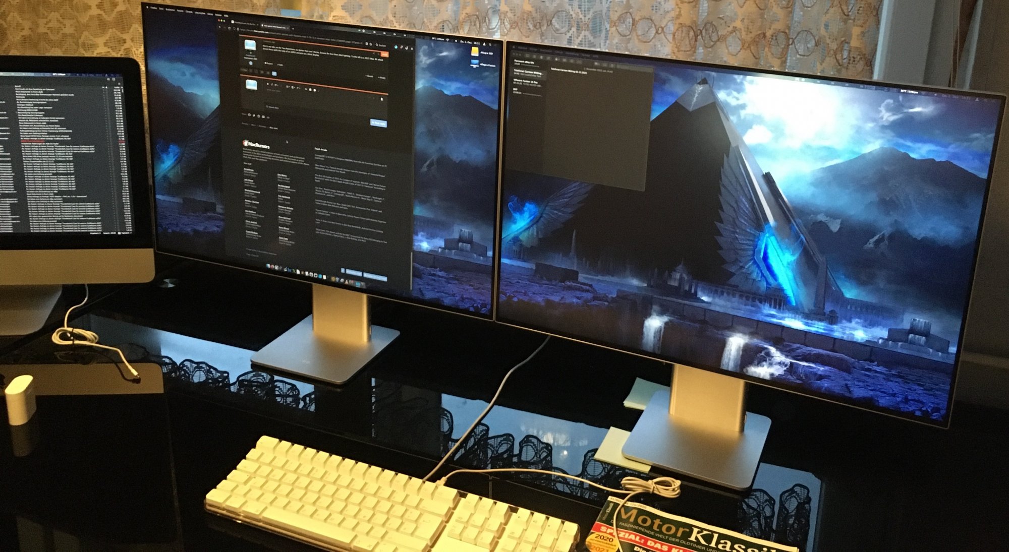 Hello,Here's my take on the "two MateViews are better than one" theme. Excuse the less than ideal lighting. To the left is a 2015 iMac 4K which “runs” these and acts as a third display.