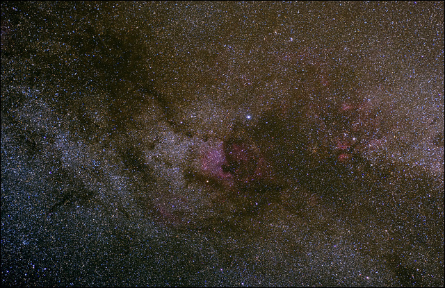 I just finished my "barn-door" tracking mount for my DSLR and last night I did a few test shots (horrible conditions, fog, high clouds, and lots of light pollution).