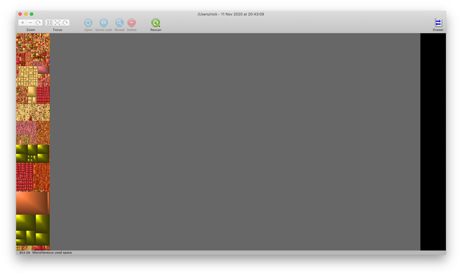 I've used GrandPerspective which I've attached below and as you can see there's 803gb of misc used space. I can't fine it anywhere in the folders.