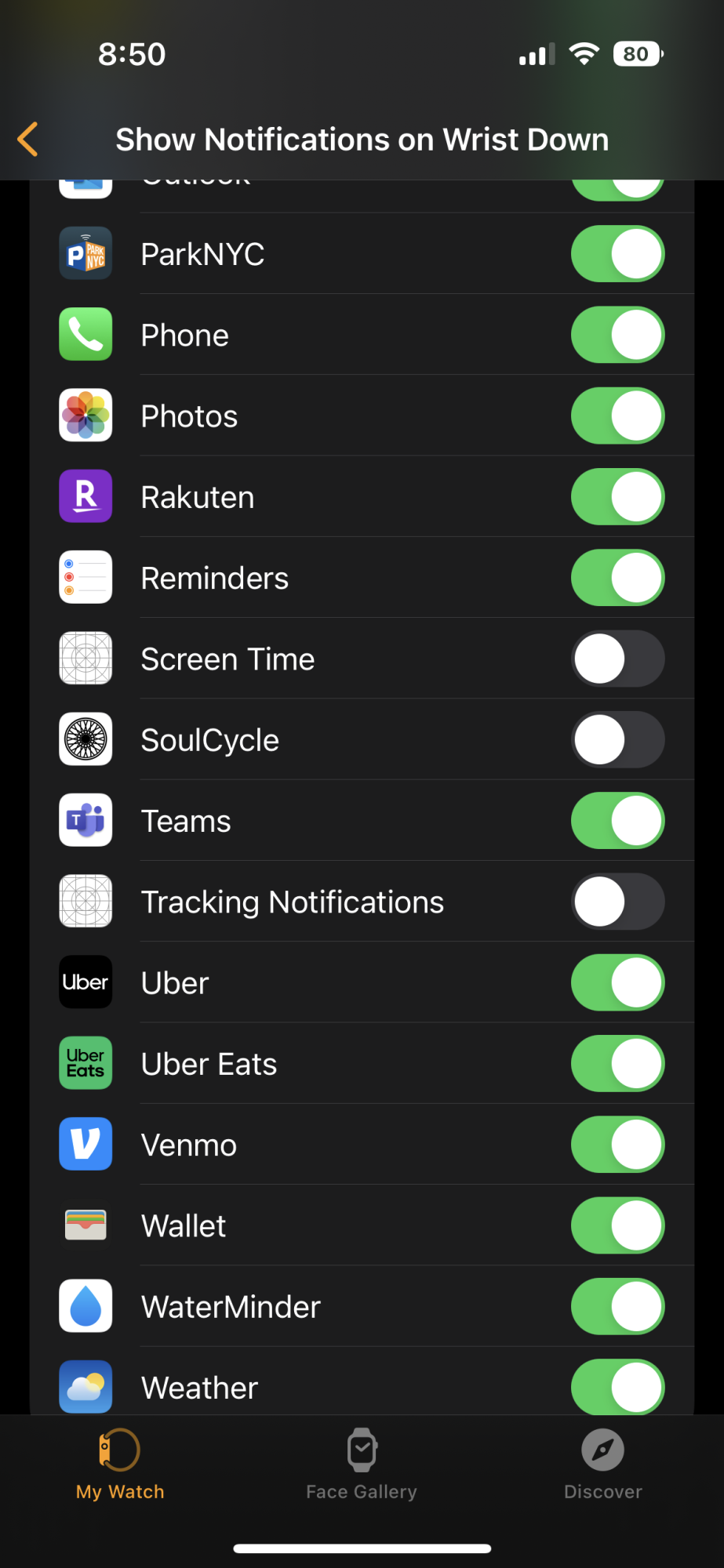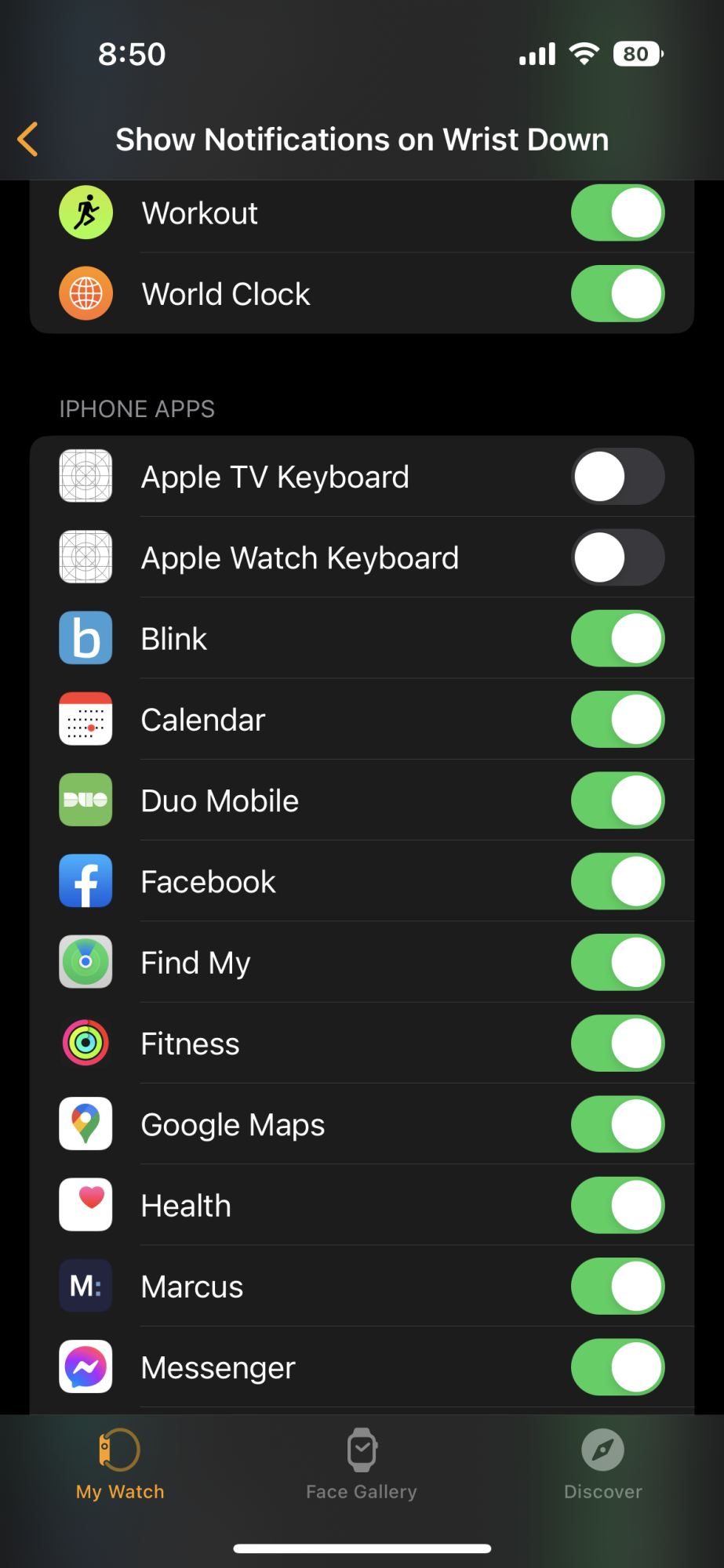 Currently, icons for Apple Watch Keyboard, Apple TV Keyboard, Screen Time, and Tracking Notifications are missing under Notifications-> Show Notifications on Wrist Down -> iPhone Apps.