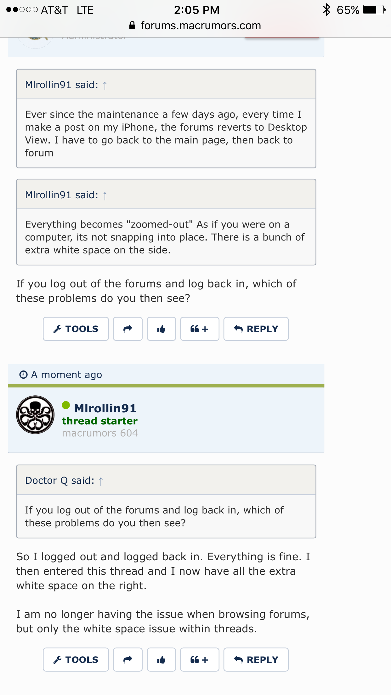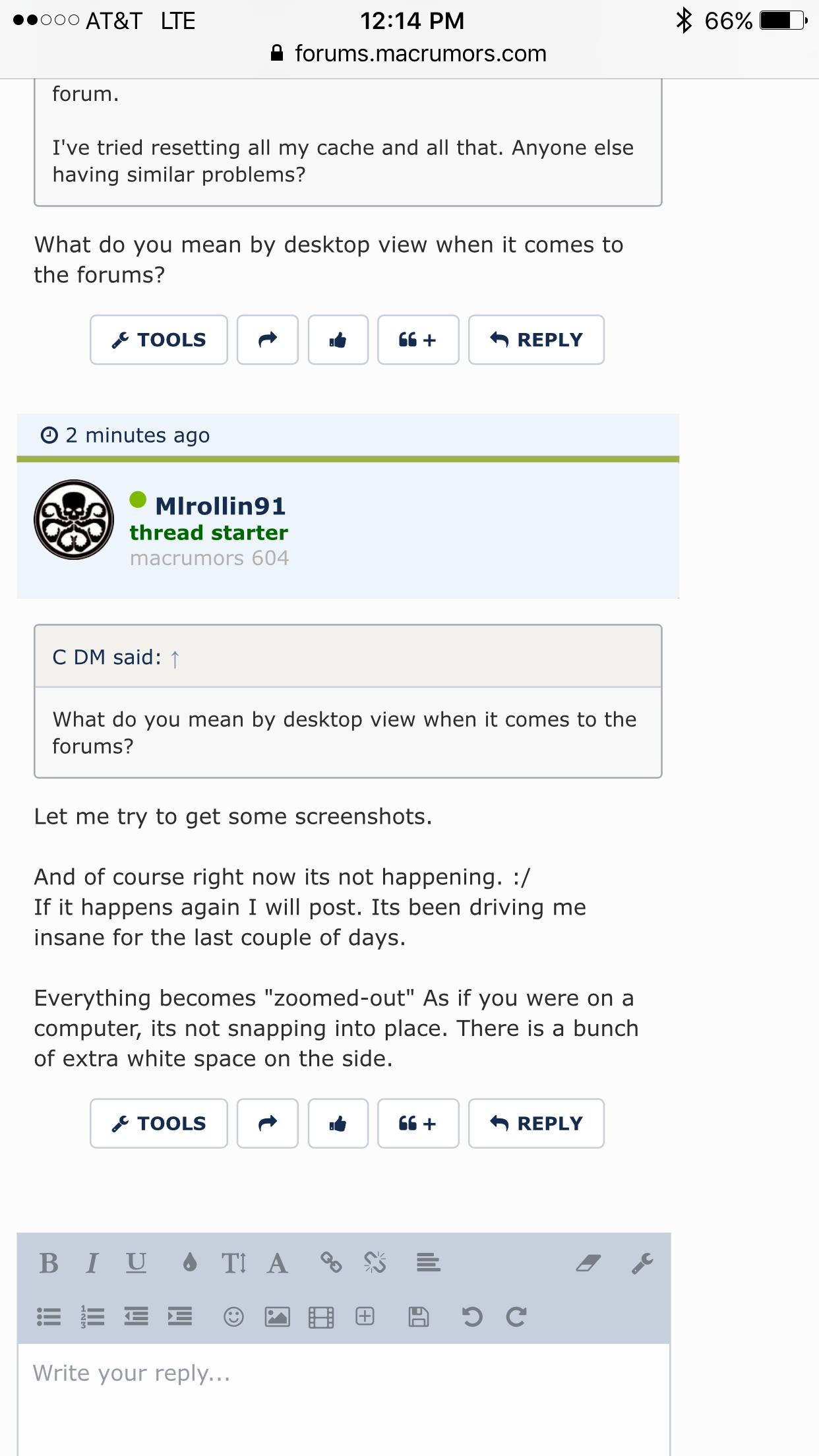 Ever since the maintenance a few days ago, every time I make a post on my iPhone, the forums reverts to Desktop View. I have to go back to the main page, then back to forum.