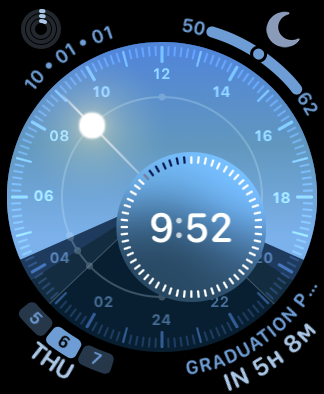 The fourth page lets you choose the complication slots. If you opted for a Full Screen look on page two, there are two complication slots: a text one that provides Date, Digital Time (!), Monogram, Stopwatch, and Timer as options—and a second, more standard Circular complication that was introduced with Infograph Modular.