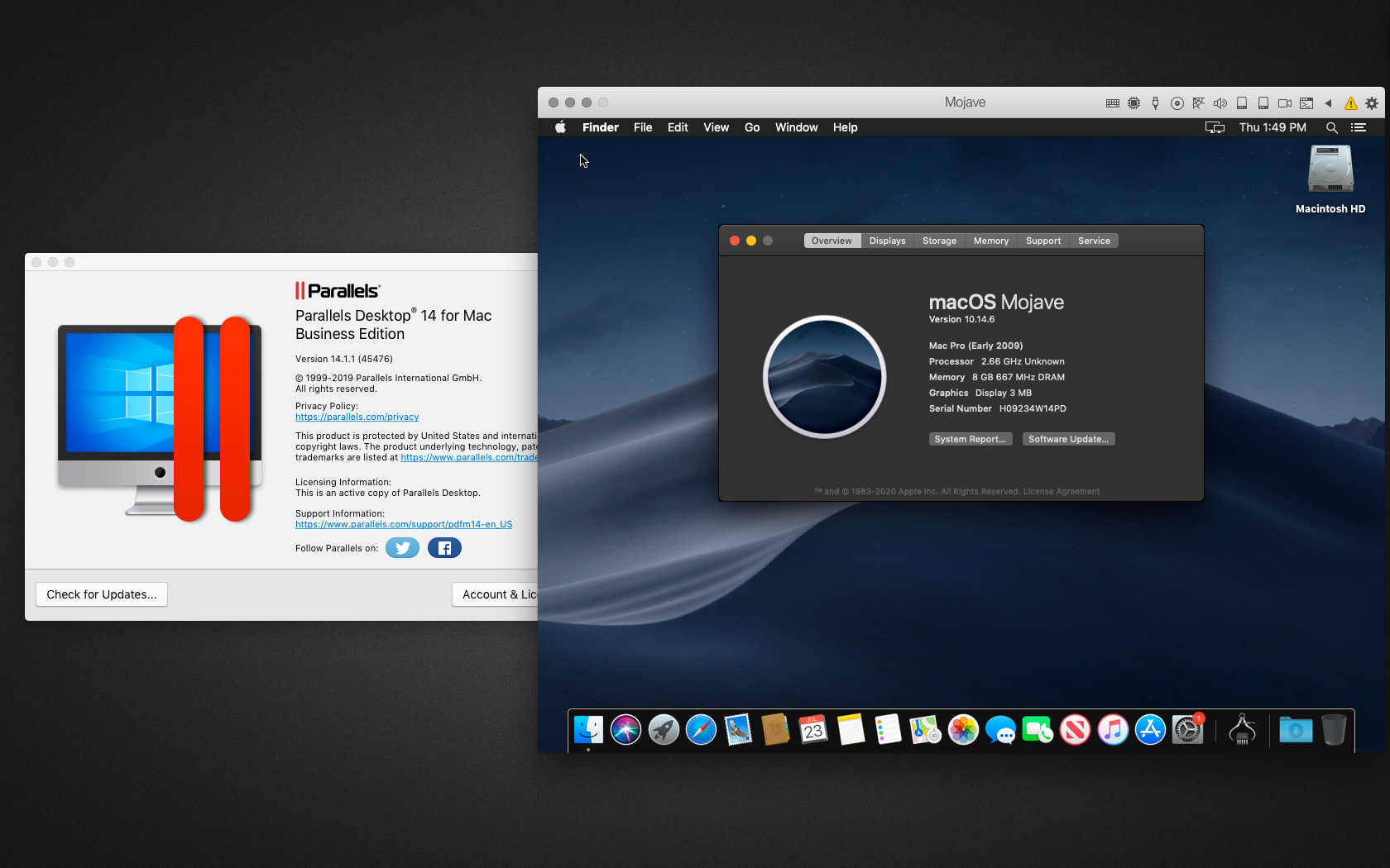 So, yeah, yesterday I thought I'd do this. My MP has no MetalMeshcompatible GPU. But I got Mojave on it, via Parallels.