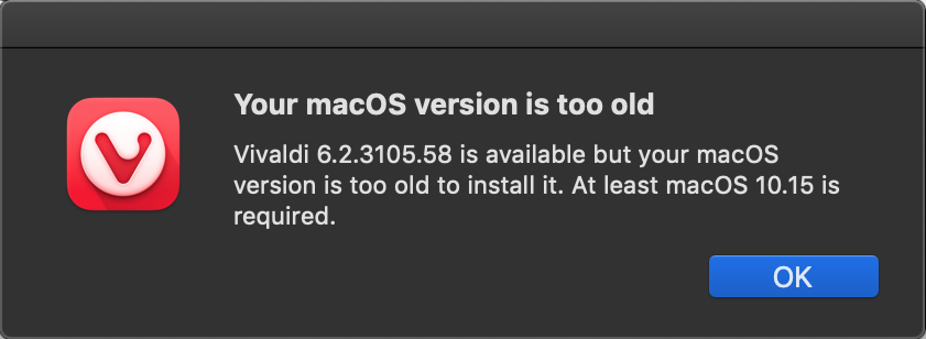 Vivaldi just ended support for Mojave.