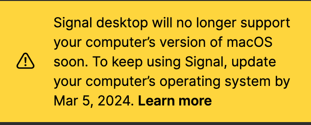 I got a similar message from Element Messenger a couple of days ago. Version 1.11.47 was fine, but the "minor" update to 1.11.48 broke it. Nothing in the change log, and the auto-updater didn't warn me.