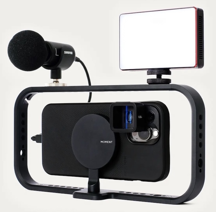 Priced at $99, the Mobile Filmmaker Cage is a two-handed cage that is meant to make it easier to mount mics and lights on the phone when filming video. It has multiple cold shoe, 1/4"-20, and ⅜"-16 attachment points for accessories.