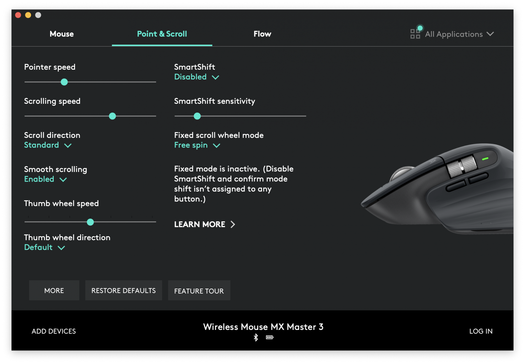 4. I played around with all the sensitivity settings offered in Mac OS as well as the Logitech software that comes with the MX Master 3 to no avail.