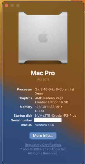 Mac Pro 5.1 with Kepler graphics: OCLP 0.6.8 (092.xx) for Ventura - clean install
