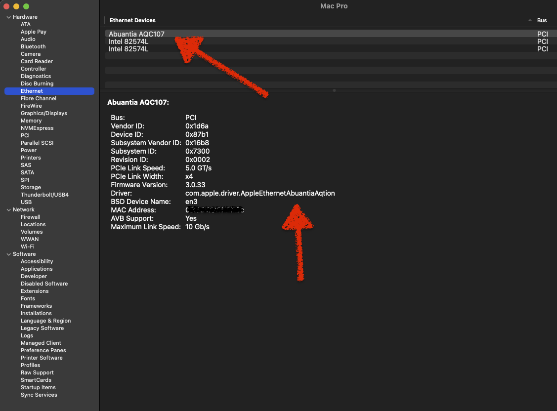 so my suggestion would be to first make sure the Abuantia driver is loaded and not the Aquantia, then delete all network settings and create just one LAN connection (no WLAN or 1G cable installed/connected) with a manual IPv4 address, 10G full duplex and jumbo frames, assign the same manual address to your switch/router, then do a full NVRAM reset to your MP and a restart of your router/switch.