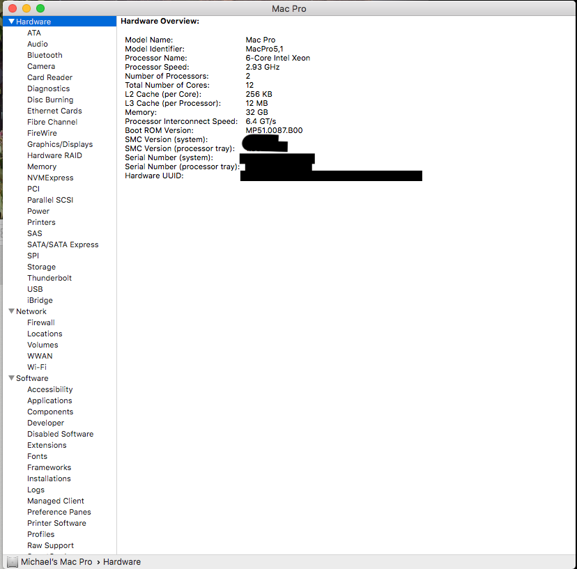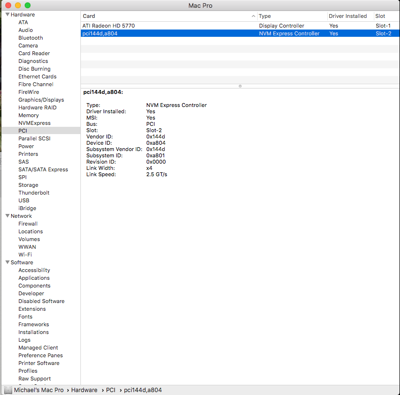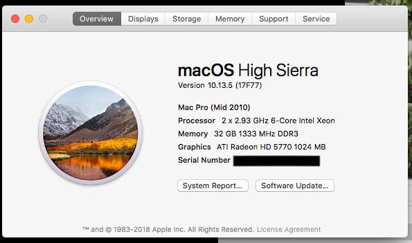 Wow, well that was an exhausting 20 hours! Thanks for all the great information, tutorials, and resources! You guys are awesome. So, I currently have my Mac Pro 5,1 (mid-2010) booting and running on a Samsung 960 Evo NVME SSD. I am on High Sierra Version 10.13.5 (17F77), and Boot ROM Version MP51.0087.B00.
