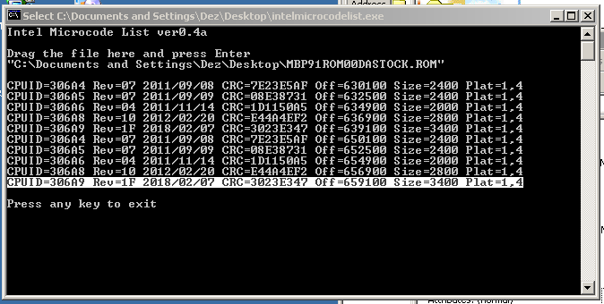 interestingly I was curious if this update contained any new Microcode, strangely the intel microcode tool reported that there where no microcodes in the Firmware file