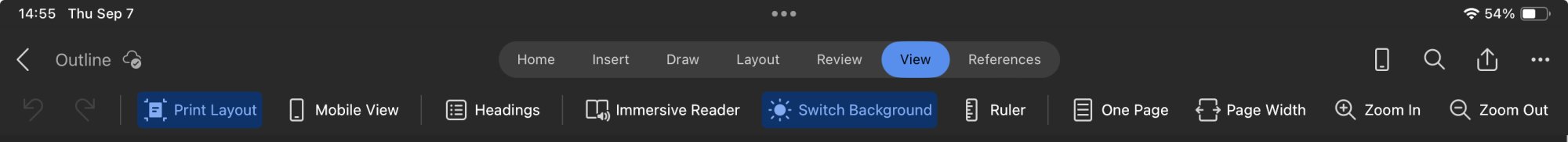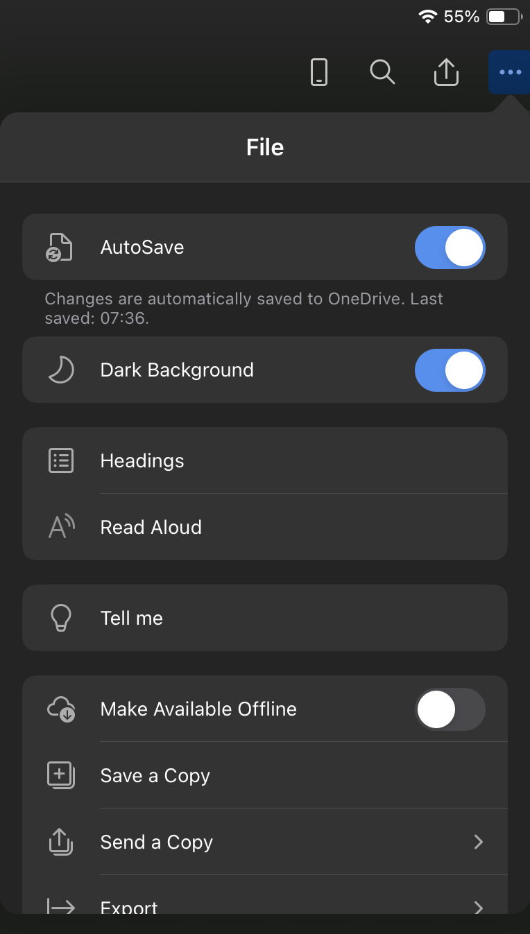 I have a 2018 iPad Pro here with iPadOS 17 beta on it and Word gives me the option to use a dark page background.