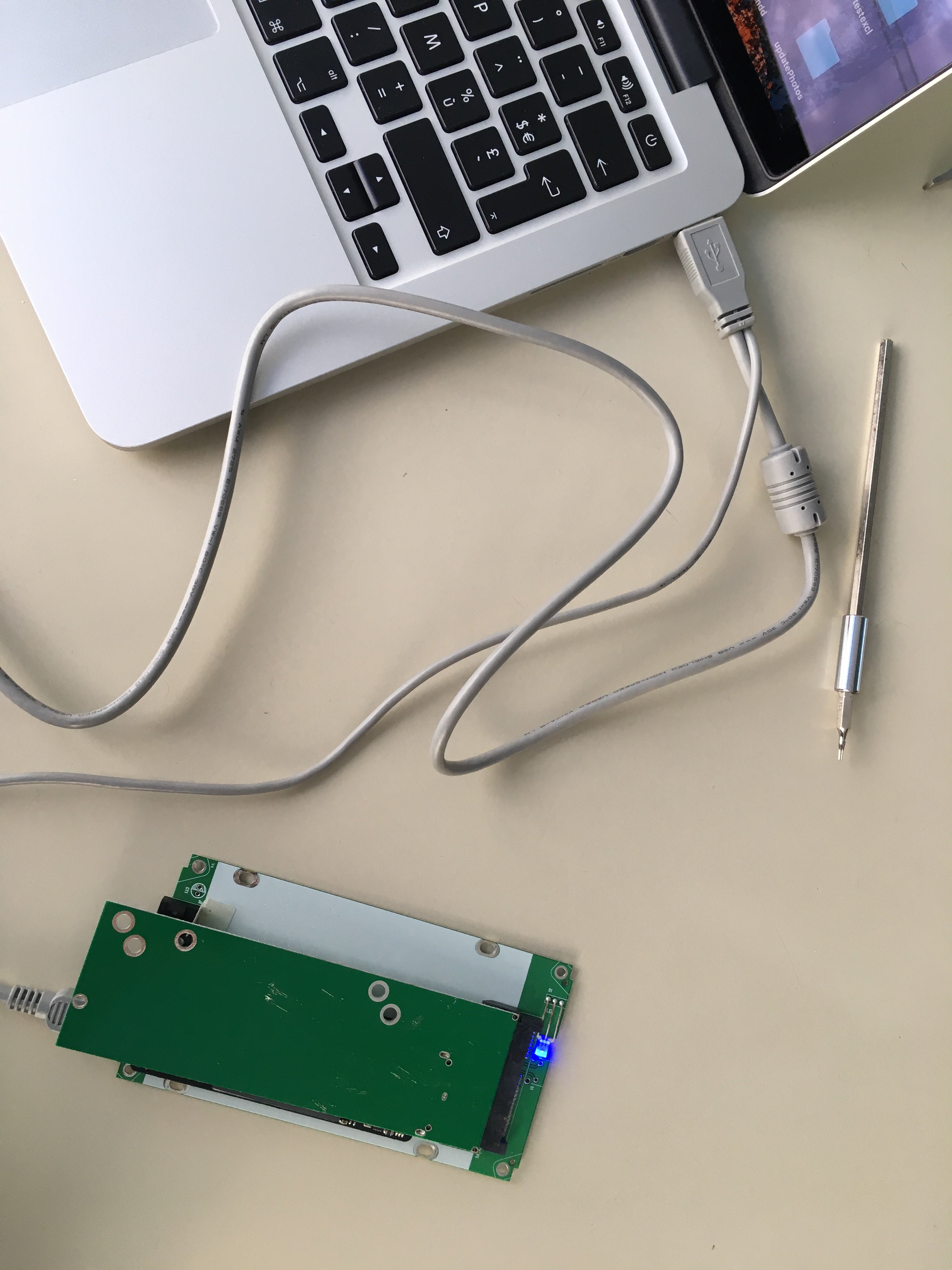 Eventually the 7 + 17 pin card to SATA adapter to the SATA to USB 2 adapter.