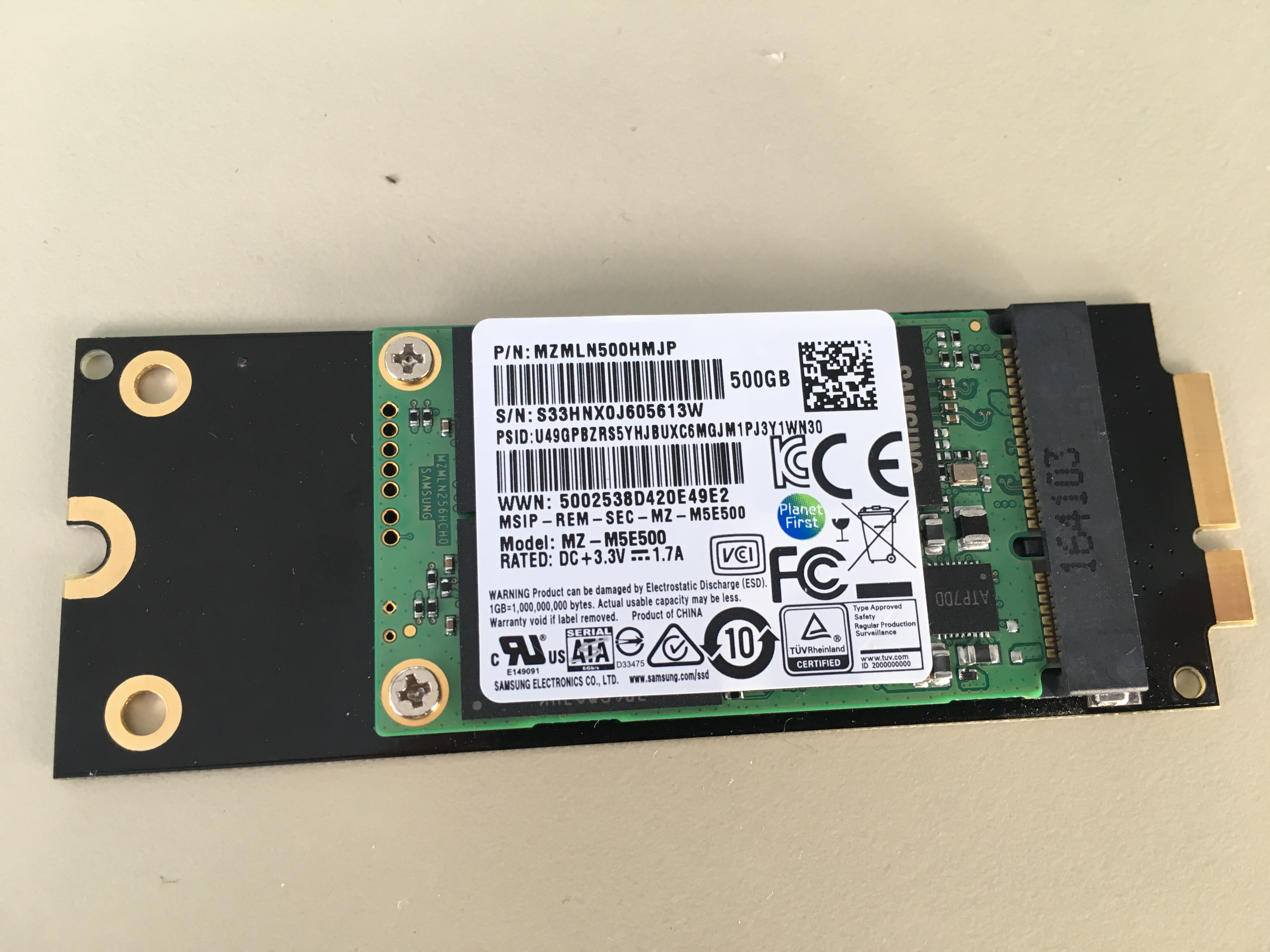 - one Samsung EVO 850 mSATA SSD (500 GB)