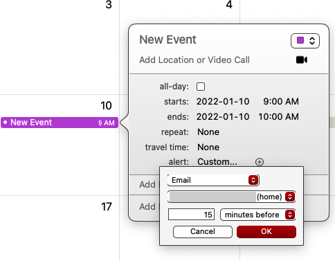 When I set an alert sent by email in Calendar I always receive multiple emails for that same event. This has been happening for years on my MacBook Pro. I thought there was something wrong with the computer. It was so annoying, I stopped using Calendar.