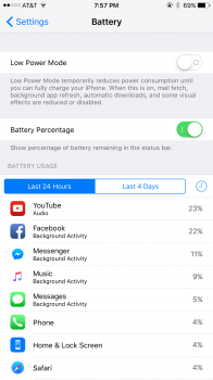 Well, just looked again. (battery usage does not always show) Music is top of my list for the last 24 hours as well as the last 4 days with background activity. I do use the application a lot and you can see that in the line that also says Audio, Background Activity. Not sure what it's busy with but I don't notice a lot of battery usage overall, just a high usage number. I have close to 60% left on my 6+ after an 18 hour average day.