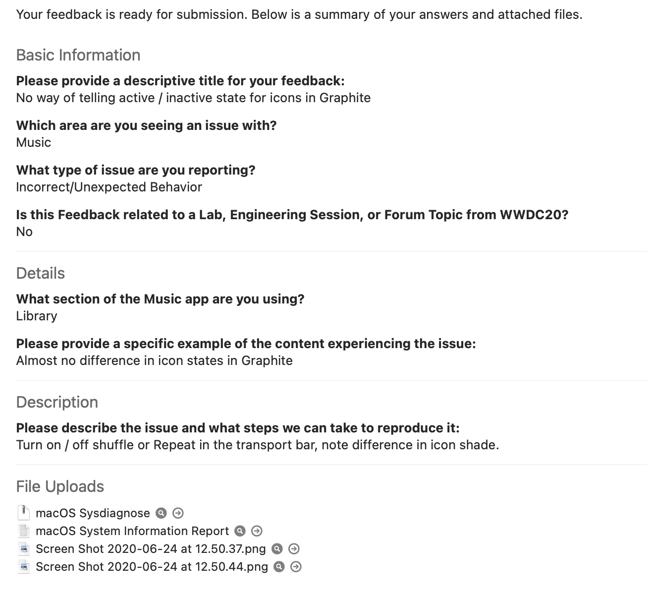 - "Search Filter Field" for Local Library "Songs / Column View" and "Playlists" is hidden -> must manually invoke "Show Filter Field" (menu < view< Show Filter Field (short cut = cmd + alt + F ) - (Still does not persist between switching playlists Music 1.1.6.28 ) - filter field- see post #140
