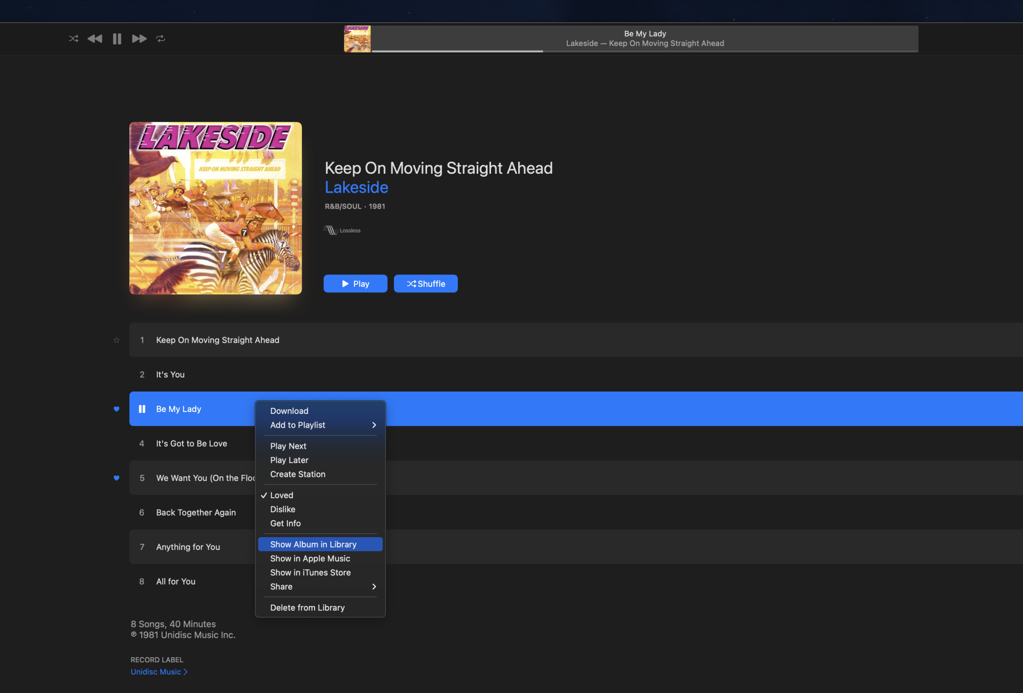 [*]When I am playing a song in the list view and then I click Controls -> Go to Current Song (cmd + L) it changes to the album view (and goes back to the song view after clicking on the back arrow). When I do the same thing playing a song from a smart playlist, it remains in the song view.