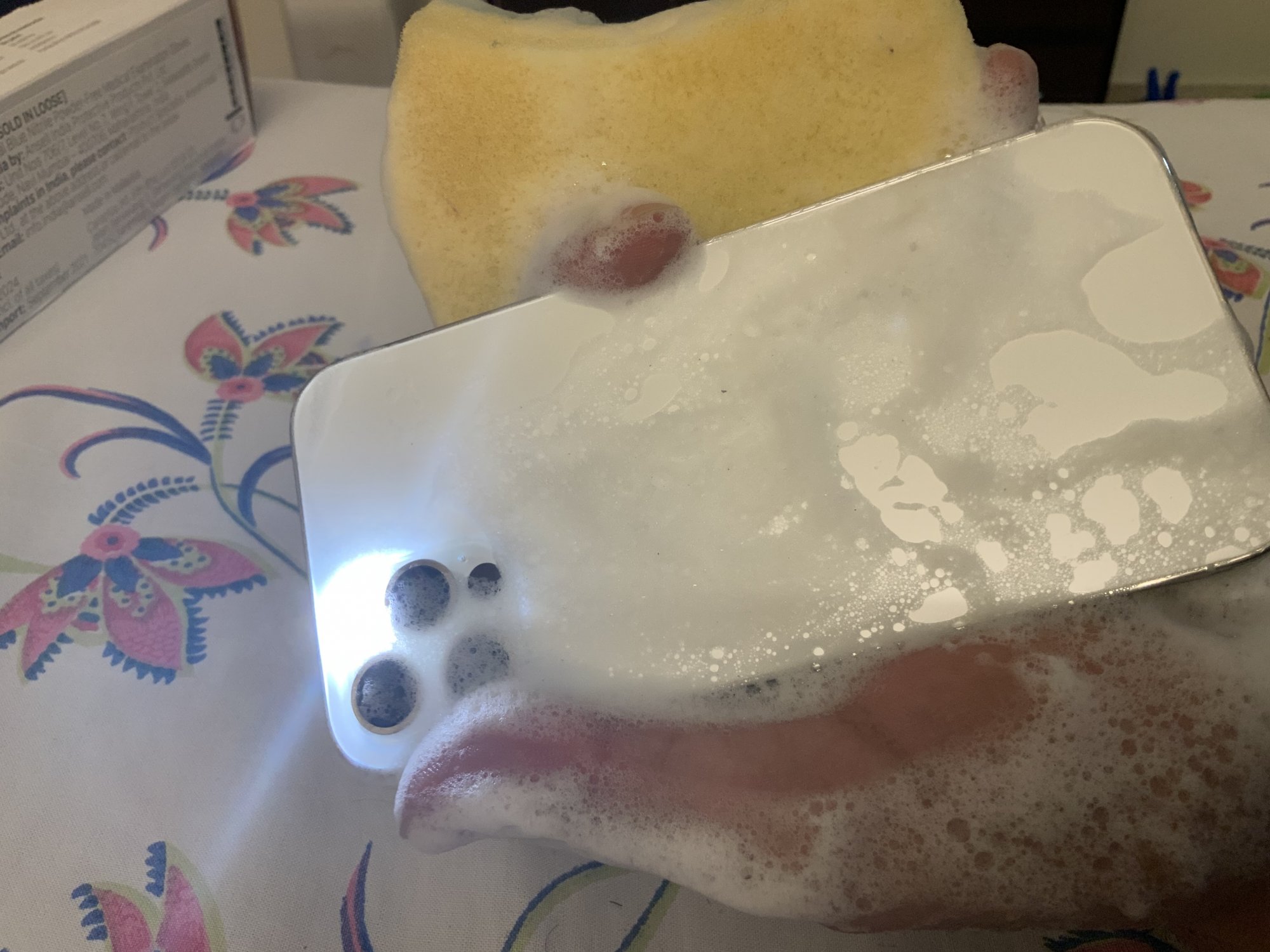 I'm wondering how you brush off the gap between volume button though with that big sponge. Did you use the corner of the sponge to brush it off?